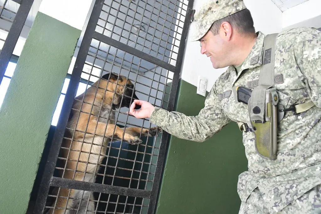 Enzi, Frida, Eva y Fargo son perros y tienen algo en común: son criados por soldados del Ejercito Nacional en la Brigada de Infantería N° 1, en el Centro de Instrucción de Perros de Trabajo Militar del Ejército (CIPTME). Y desde cachorros han sido entrenados para buscar narcóticos, explosivos y rescatar personas porque son perros de trabajo militar. Pese a que el nombre de su trabajo hace pensar en disciplina, y ese concepto es parte de su rutina diaria, estos perros “hacen todo por el juego”, afirmaron a El Observador miembros del Batallón, durante un entrenamiento de estos animales.