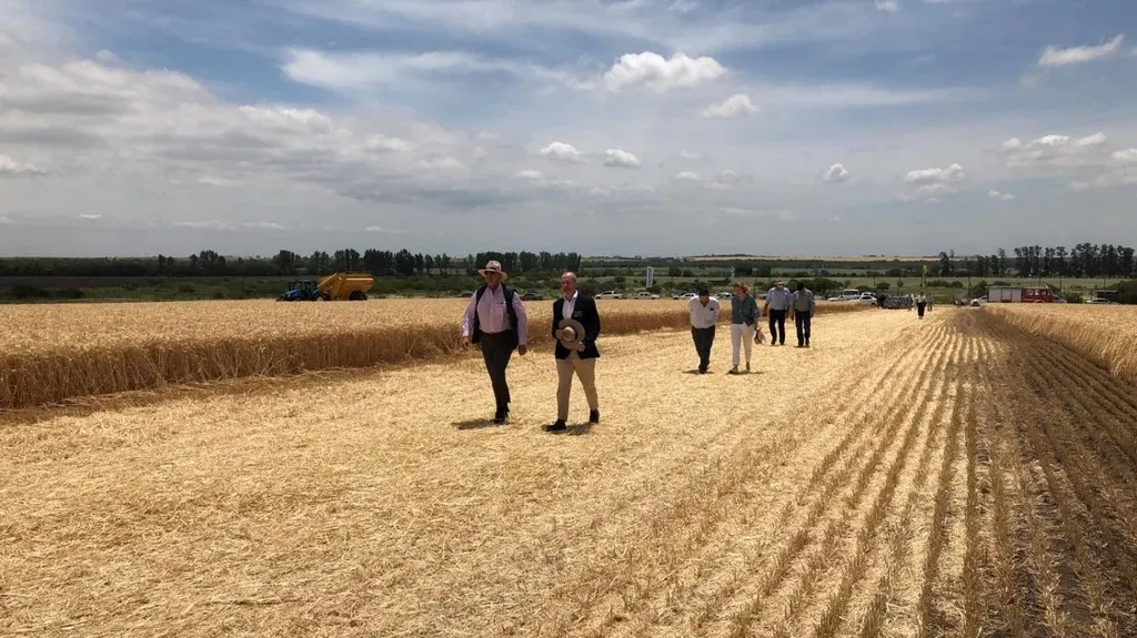 Este martes en Dolores, por primera vez, hubo una inauguración de una cosecha de trigo, en un predio de esa gremial, en los accesos a Dolores (perimetral Juan Manuel Blanes y camino Rincón de Ruíz).