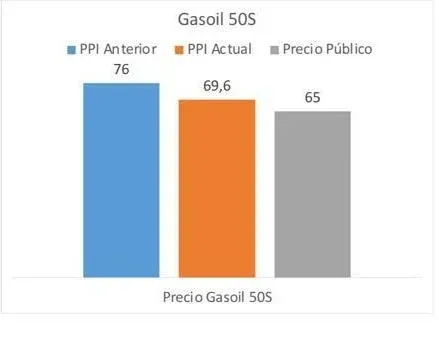 Por su parte, el gasoil tiene como referencia el precio del Ultra Low Sulfur Diesel (ULSD 62). La actualización más aproximada posible a lo que indicaría el Precio Paridad de Importación (PPI) muestra que el precio promedio del litro bajó $ 3,291, y pasó de $ 38,9 a $ 35,609 (-8,5%).