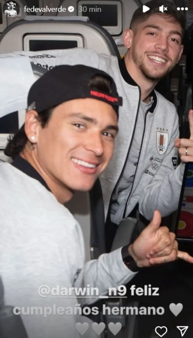 Federico Valverde saludó a Darwin Núñez en su cumpleaños