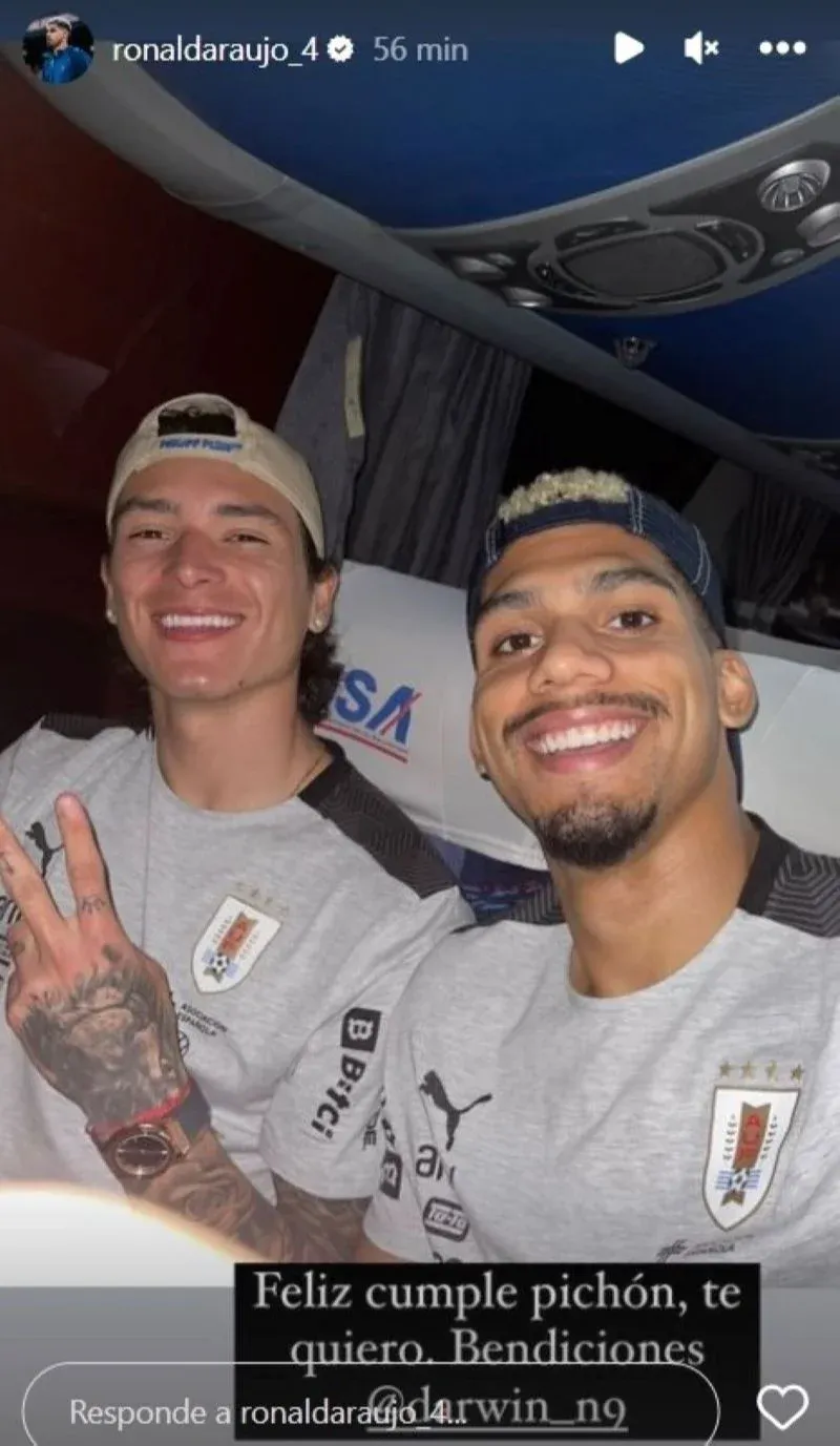 Ronald Araujo se acordó de saludar a Darwin Núñez en su cumpleaños