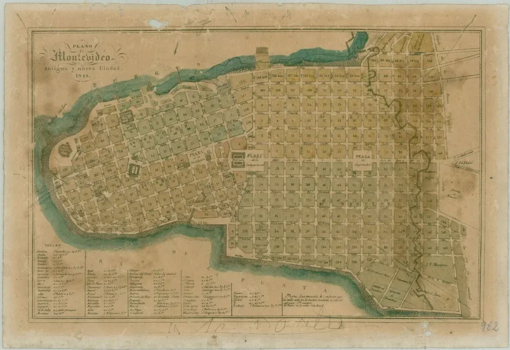 Archivo de la Biblioteca Nacional Plano de la antigua y la nueva ciudad de Montevideo (1848) En el caso de Montevideo, así como Colonia del Sacramento, Buenos Aires o Río Grande del Sur, algunos de los registros se vinculan a la fortificación de los territorios por parte de los imperios que debían generar proyectos de defensa de los espacios. “Muchas veces representan plantas de cómo fortificar mejor esas ciudades. El mapa antecede a lo que uno, si hubiera estado en ese momento, podía encontrar deambulando por esas calles”.