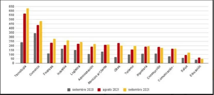 La tecnología, las finanzas y el comercio fueron los sectores más activos. Las actividades que más demandaron estos cargos en setiembre fueron comercio, con 345 oportunidades, y logística, con 195. Cargos como vendedores o choferes, que en la mayoría de los casos no requieren un nivel alto de formación, predominaron.