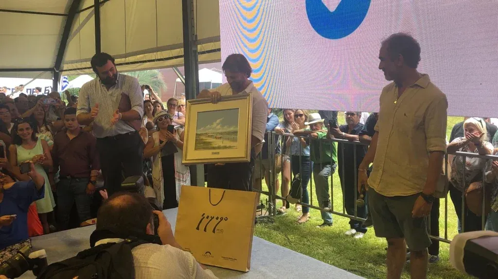 Tomó la palabra, agradeció al futuro mandatario y amigo y le entregó un regalo. “Esperemos poder verlo colgado en la Torre Ejecutiva”, le dijo a Lacalle cuando el presidente electo vio que se trataba de un cuadro que retrataba la playa de La Paloma, la favorita de Lacalle.