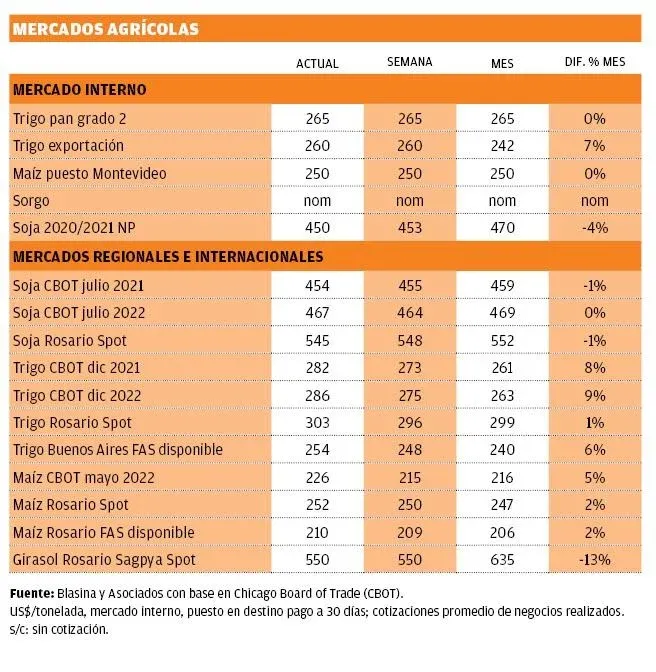 De esa manera, el trigo se va acercando a los US$ 300 por tonelada, una referencia muy fuerte. En esta semana cruzó la línea de US$ 280 por tonelada para el trigo diciembre 2021 y US$ 285 para diciembre 2022, lo que sigue augurando una amplia siembra en el otoño.