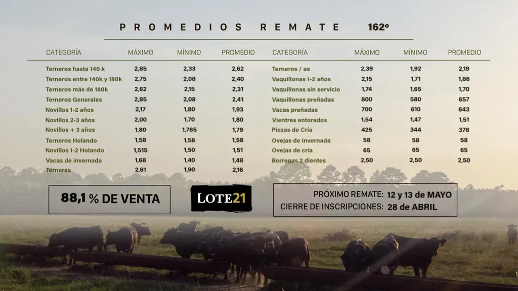 El remate Nº 162 de Lote 21 finalizó con el 88,1% de colocación y subas en algunas categorías.