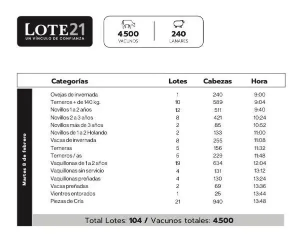 “Hay una menor oferta de ganado y Lote 21 llega a la venta con un muy buen número”, resaltó.
