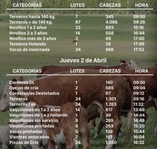 En el que será su 151° remate por pantalla, Lote 21 venderá 13.000 vacunos y 672 lanares certificados, los días miércoles 1° y jueves 2 de abril, en ambos casos desde la hora 9.
