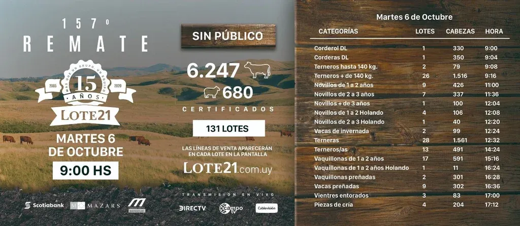 En lote21.com.uy ya está disponible el catálogo con todos los lotes.