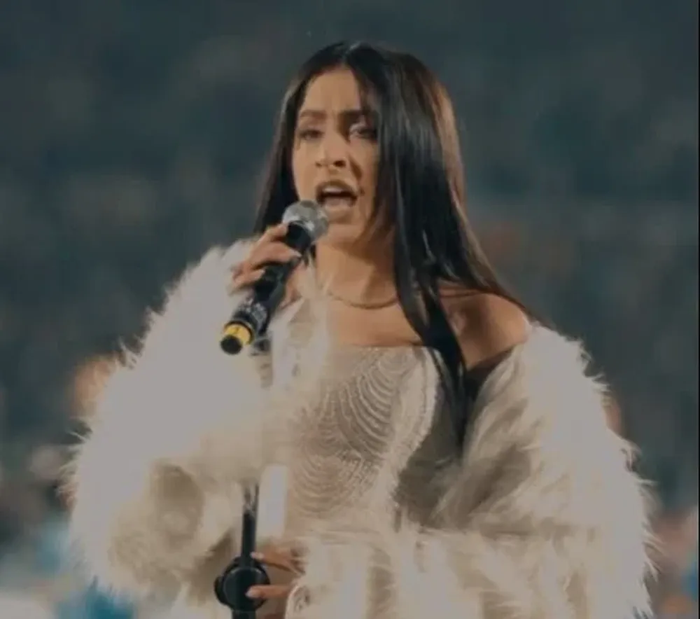Antes del partido ya había mostrado su felicidad por cantar el himno antes del partido.
