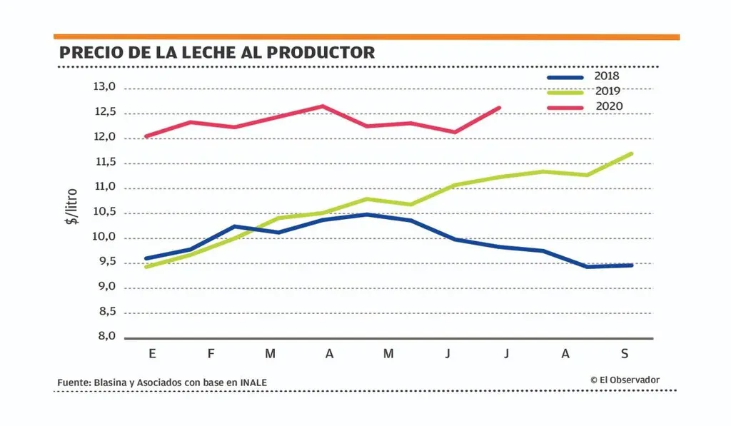 Lo bueno es que la mencionada suba que aplicó Conaprole para la remisión de leche en setiembre lleva el valor a unos US$ 0,30 por litro.
