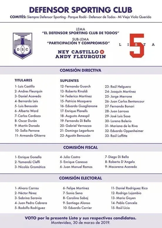 ¿Qué propone la Lista 5 para el futuro de Defensor Sporting?
