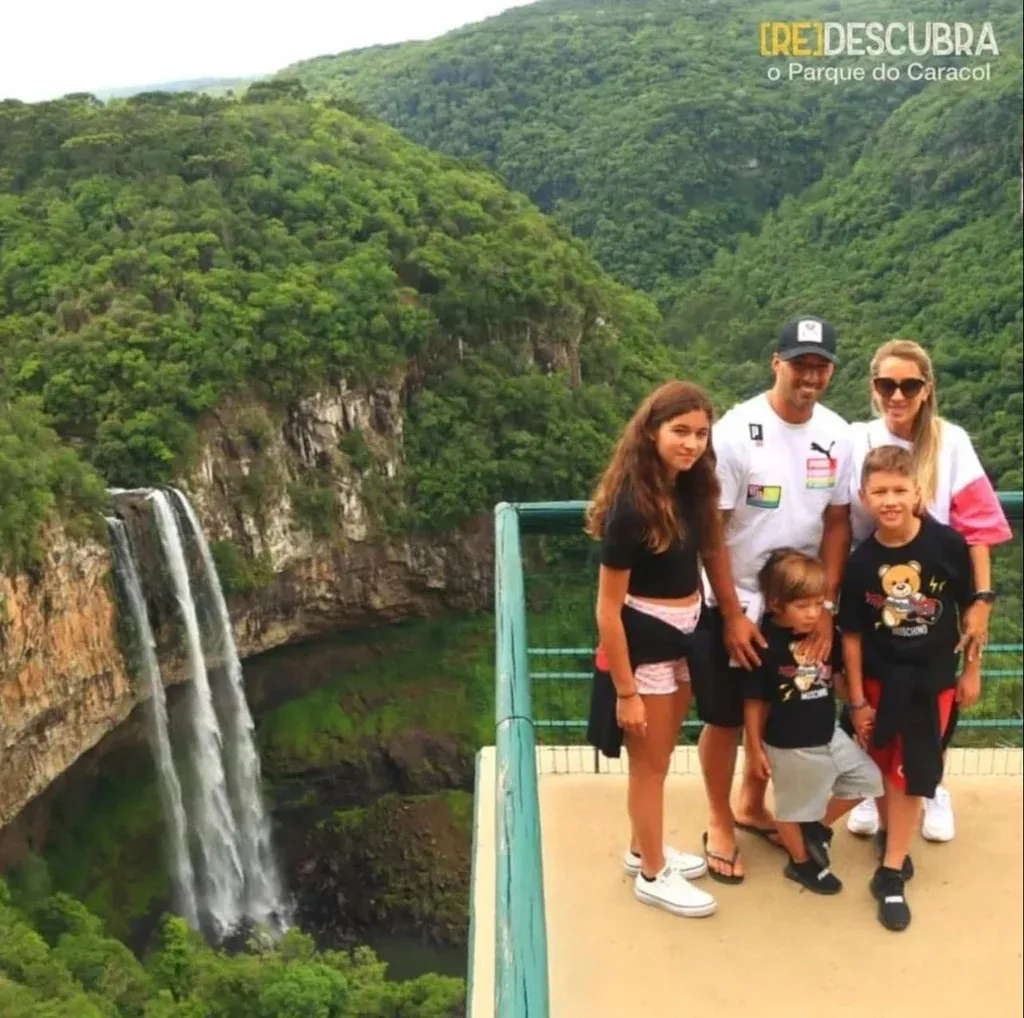 Luis Suárez de paseo familiar en el sur de Brasil La familia se sacó una foto junto a la caída de agua de 131 metros.
