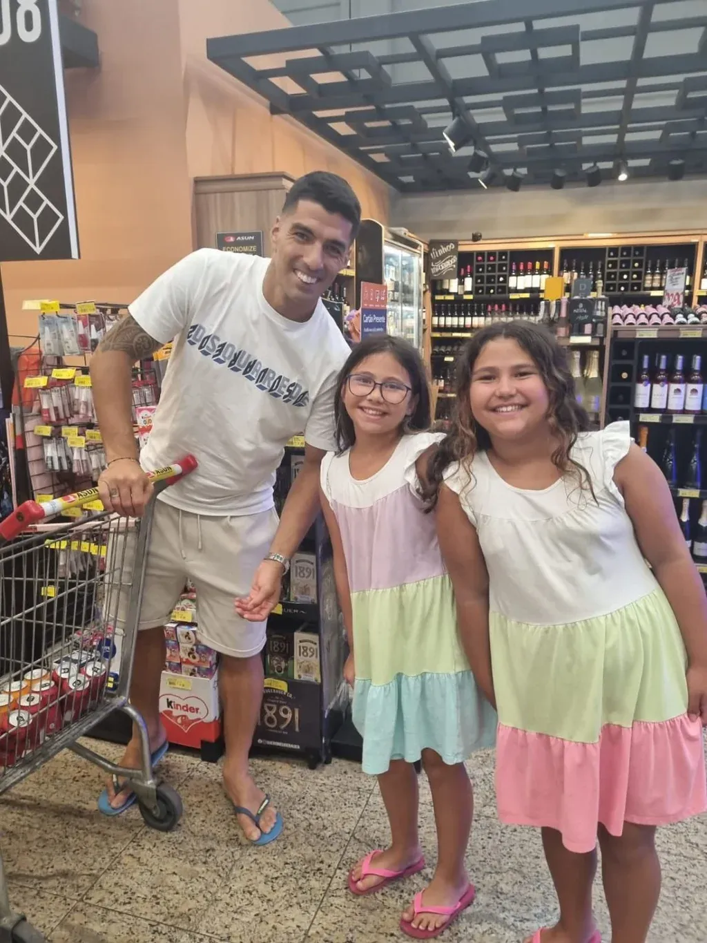 Luis Suárez de compras en un supermercado de Porto Alegre junto a dos hinchas de Gremio al otro día de su debut con hat trick y título incluidos "En las redes sociales, los internautas bromearon y dijeron que Suárez ya está 100% adaptado a Brasil. Eso es porque, además de circular por los comercios, el delantero uruguayo calzaba chancletas de la marca Havaianas", contó UOL Esporte.