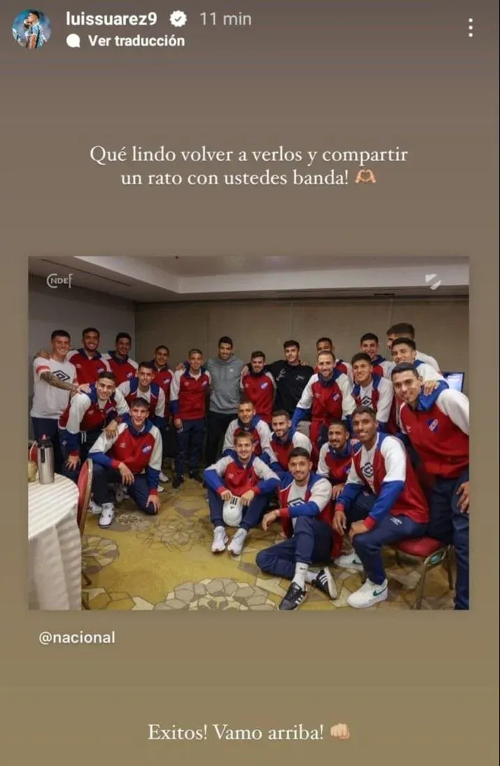 Tras el encuentro, Suárez compartió la foto de Nacional y dejó un mensaje en su Instagram.