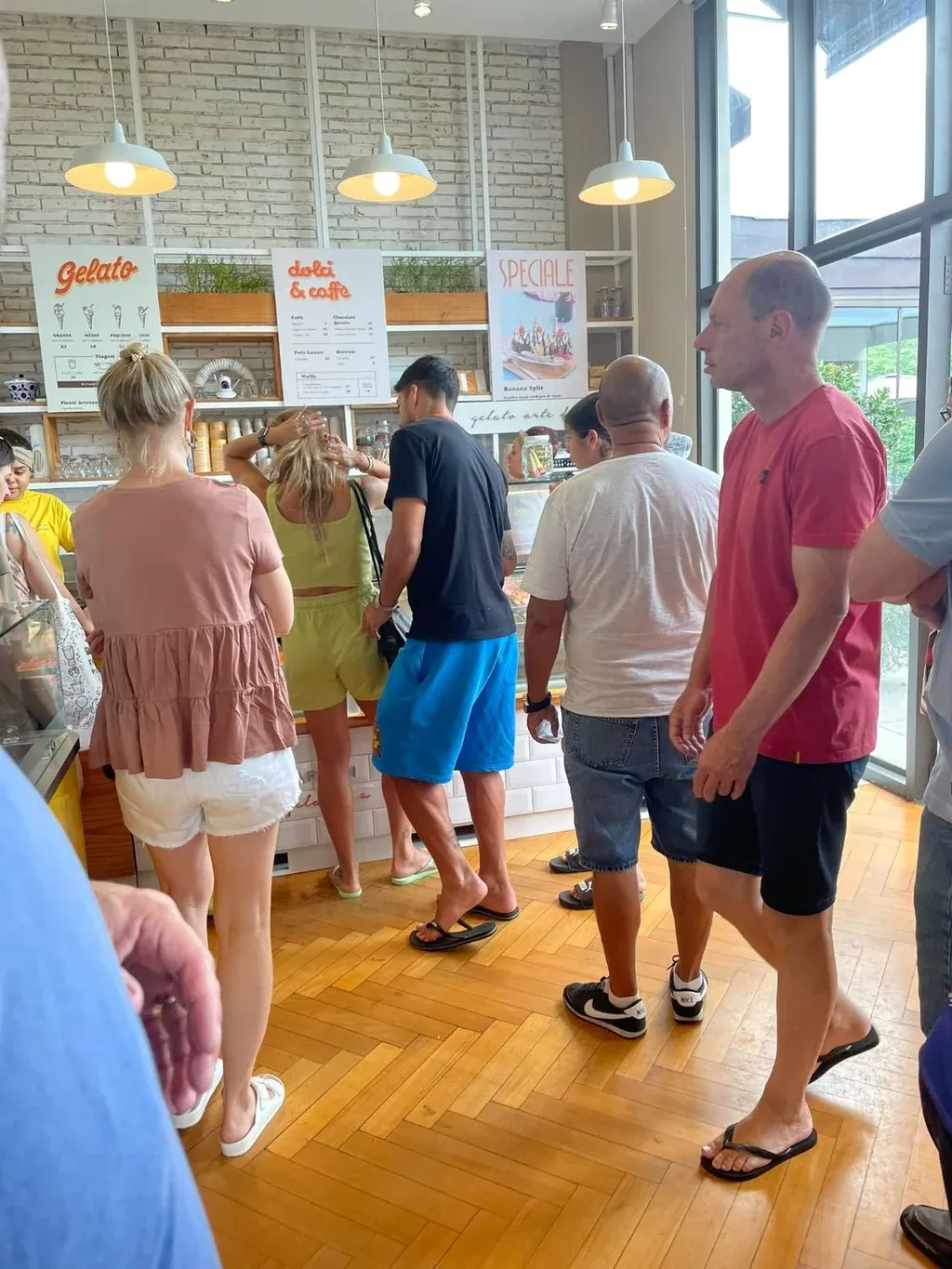 El delantero fue a una heladería junto a su pareja, Sofía Balbi, y sus hijos, e hizo la fila como todos los clientes.
