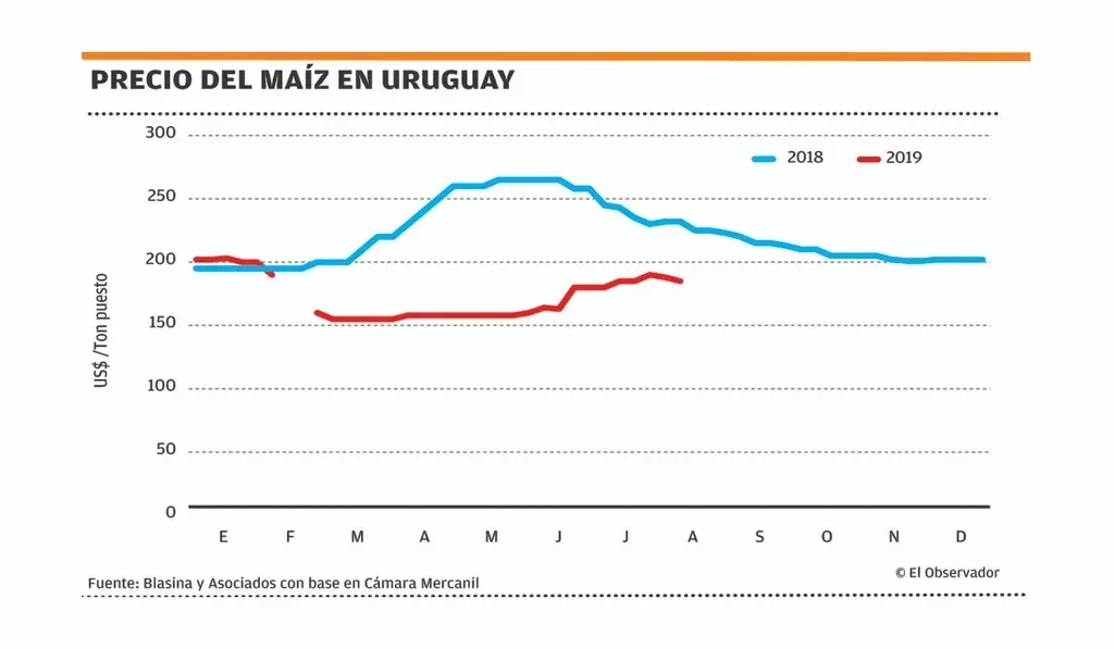 Para la ganadería local el escenario invita a un mayor uso del grano en la alimentación. El mercado ganadero está muy firme en Uruguay, tanto para el ganado gordo como para el de reposición. Y el maíz continuará accesible, aunque deba importarse. El kilo de novillo vendido a US$ 2,15 por kilo compra unos 12 kilos de maíz, una relación inusualmente favorable a usar el grano en la alimentación. La lechería, a su vez, tiene un alivio en la posibilidad de seguir combinando pasturas con granos.