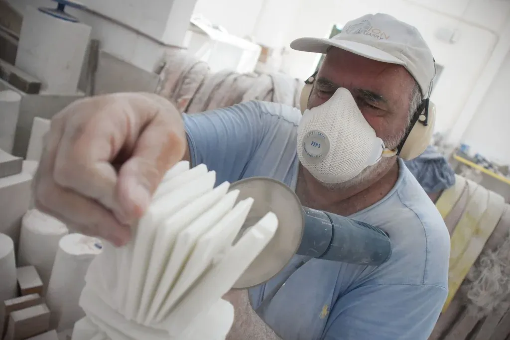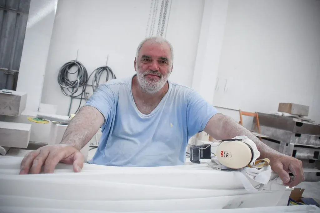 Para encontrarlo hay que pasar entre algunas piezas en construcción, grandes trozos de mármol con cortes y marcas acá y allá que van encontrando su forma en las manos del escultor. Atrás está el artista, sentado en una silla de madera tallando un trozo de mármol con una amoladora. Trabaja en una pieza, en dos, en tres, en varias al mismo tiempo. En el taller y afuera, donde por esos días terminan de dar forma a un nuevo museo que se proyecta como un "puente" entre el arte local y los ojos del mundo. O el arte del mundo y los ojos locales.