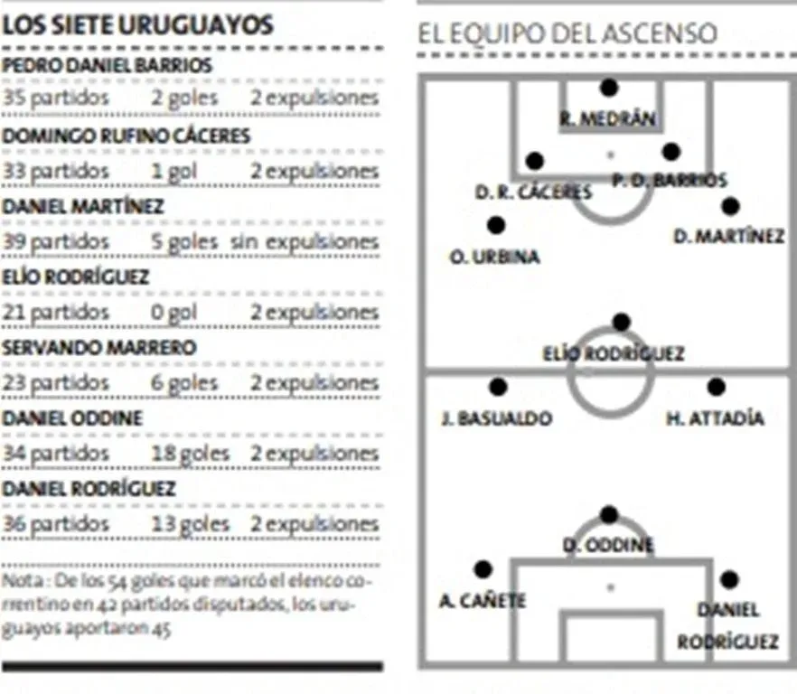 El club correntino, que siguió contratando jugadores uruguayos y en buen número también paraguayos, se mantuvo durante ocho temporadas consecutivas en Primera división.