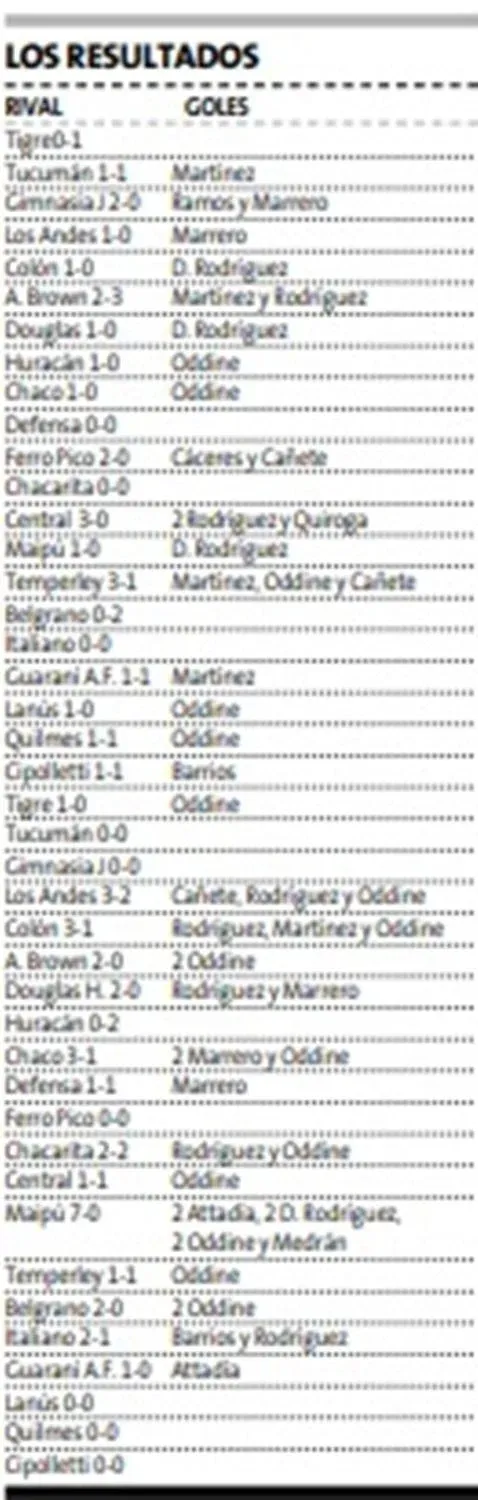 El delantero Daniel Oddine fue el goleador de aquella memorable campaña tras aportar 18 conquistas, seguido por las 13 de Coquito Rodríguez.