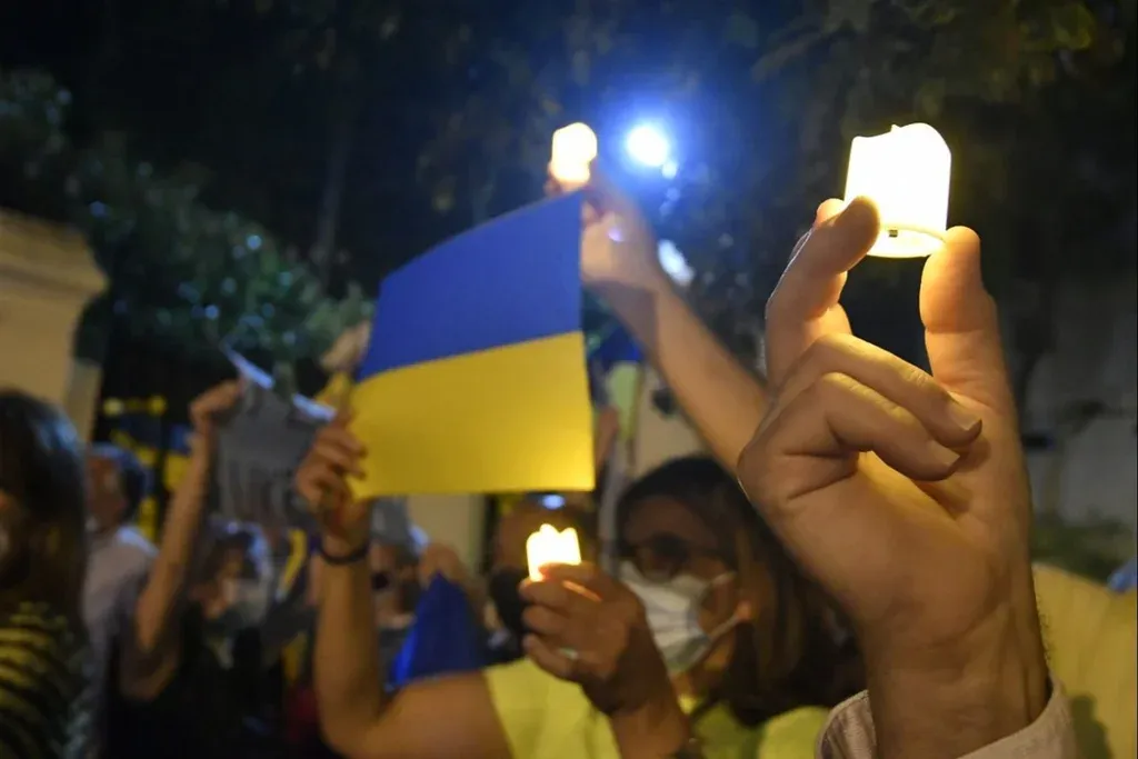 Decenas de personas llegaron hasta la embajada de Rusia en Montevideo, sobre la avenida Bulevar España, este miércoles, para pedir por el alto al fuego y apoyar al pueblo ucraniano. Llamaron a asistir con flores y claveles amarillos, por los derechos humanos.