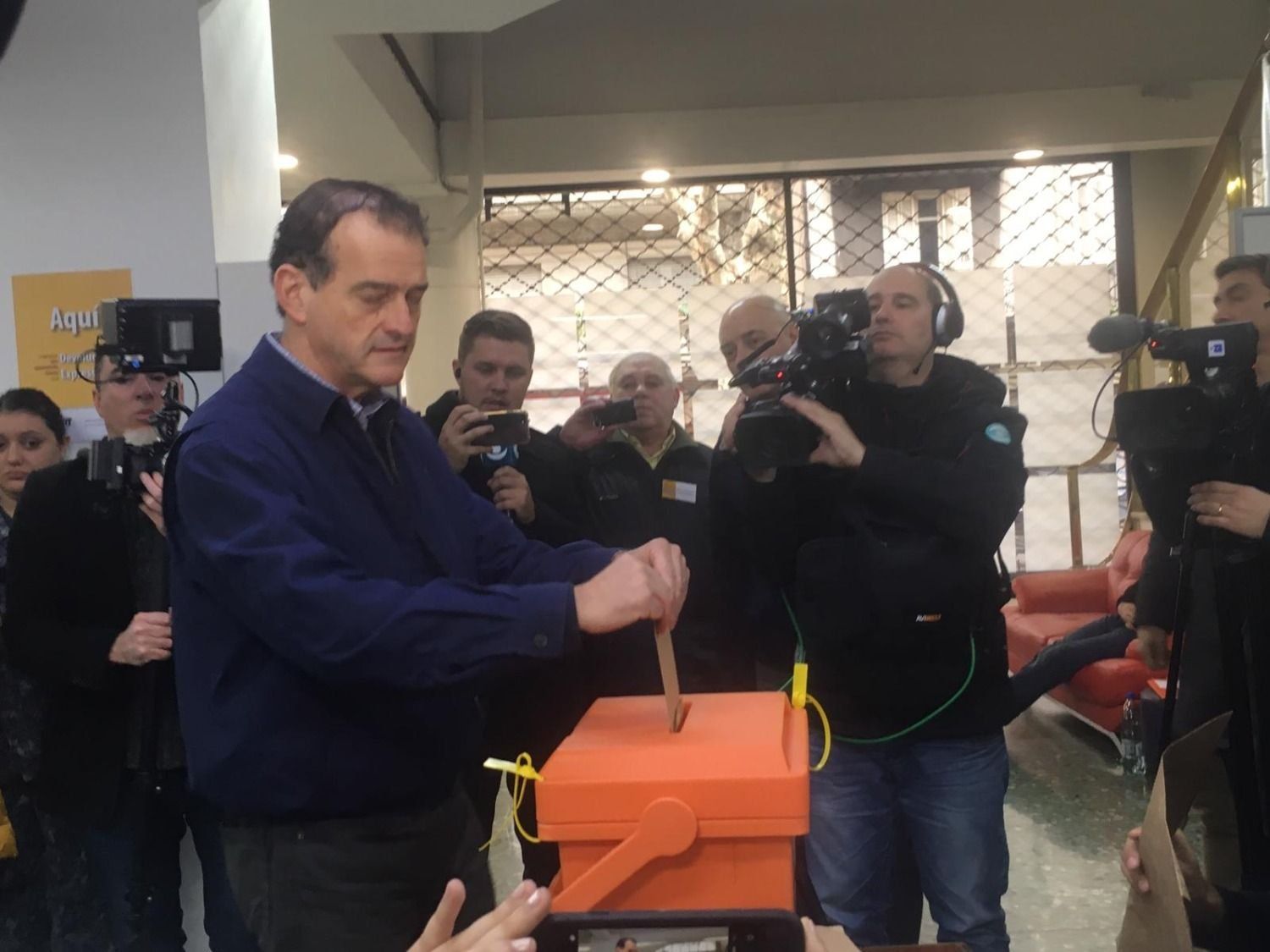 Sobre la hora 19, los cerca de 50 militantes presentes en el local esperaban pacientes por la llegada de Manini Ríos. Eran en su mayoría personas de más de 50 años, que se agruparon en torno al televisor para confirmar que Cabildo Abierto hubiera recibido los 500 votos que habilitarían la participación del partido en las elecciones de octubre. Cuando la presentadora anunció el cierre de los circuitos electorales y el primer voto escrutado que se vio en pantalla era para Óscar Andrade, el precandidato frenteamplista que quedó en tercer lugar en la interna partidaria, uno de los cabildantes —que estaba en la sede desde las seis de la mañana— respondió al monitor con abucheos.