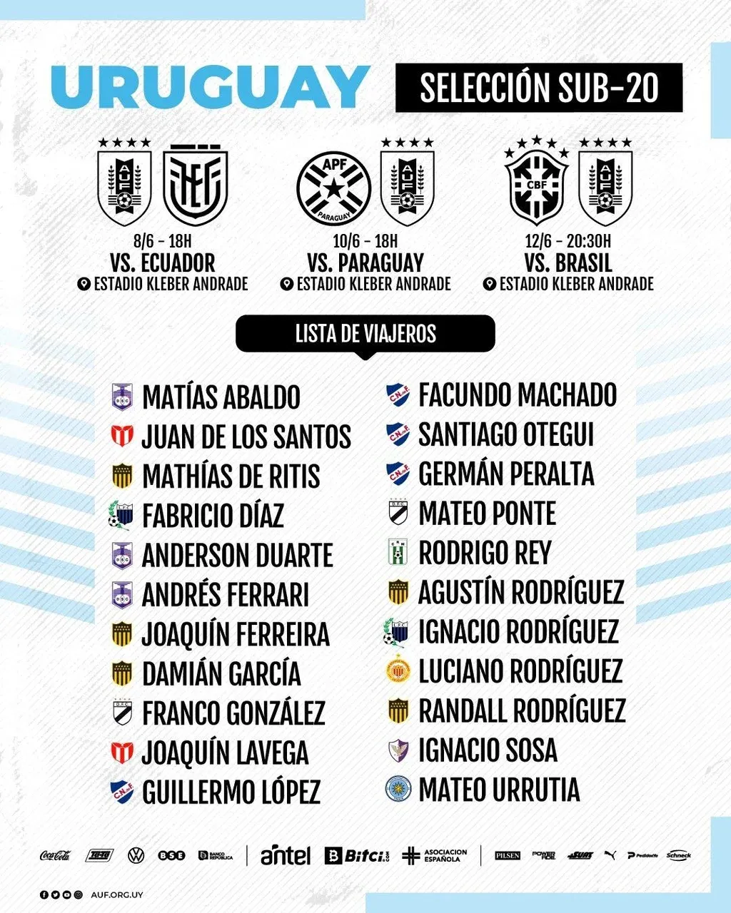 Otra baja que tendrá Uruguay es la de su capitán Fabricio Díaz, jugador de Liverpool que el miércoles disputó la final del Torneo Intemedio contra Nacional en el Estadio Centenario. Y la otra es la de uno de los mejores jugadores de esta generación, Anderson Duarte, quien sufrió esguince de rodilla en Defensor Sporting en duelo ante Danubio.