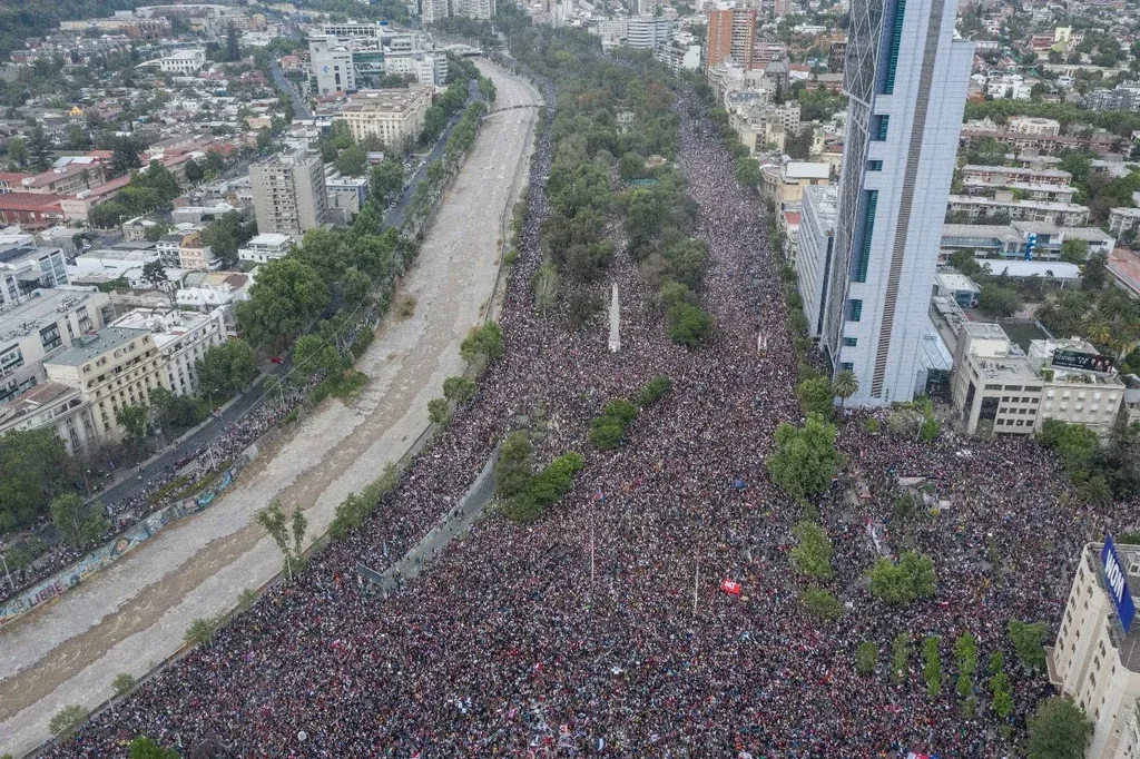 Una marea copó las principales avenidas de Santiago y en la céntrica plaza Italia generó una postal única que deberá marcar a varias generaciones, demostrando que los chilenos caminan firmes en busca de cambios en el modelo económico neoliberal que instauró Augusto Pinochet y se consolidó en democracia.