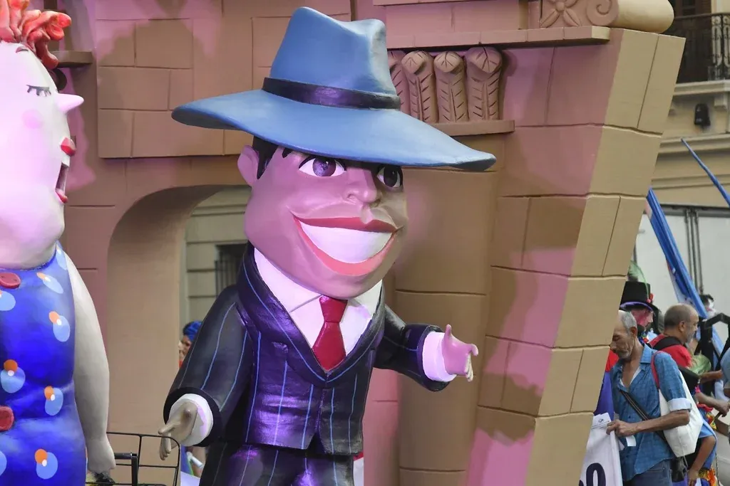 Foto: Leonardo Carreño. Carro alegórico del Carnaval 2024. Admitió que hubo que hacer un ajuste exigente tras una lista inicial extensa de personas icónicas, quedando en el carro las representaciones de Rosa Luna, Carlos Gardel y Obdulio Varela.