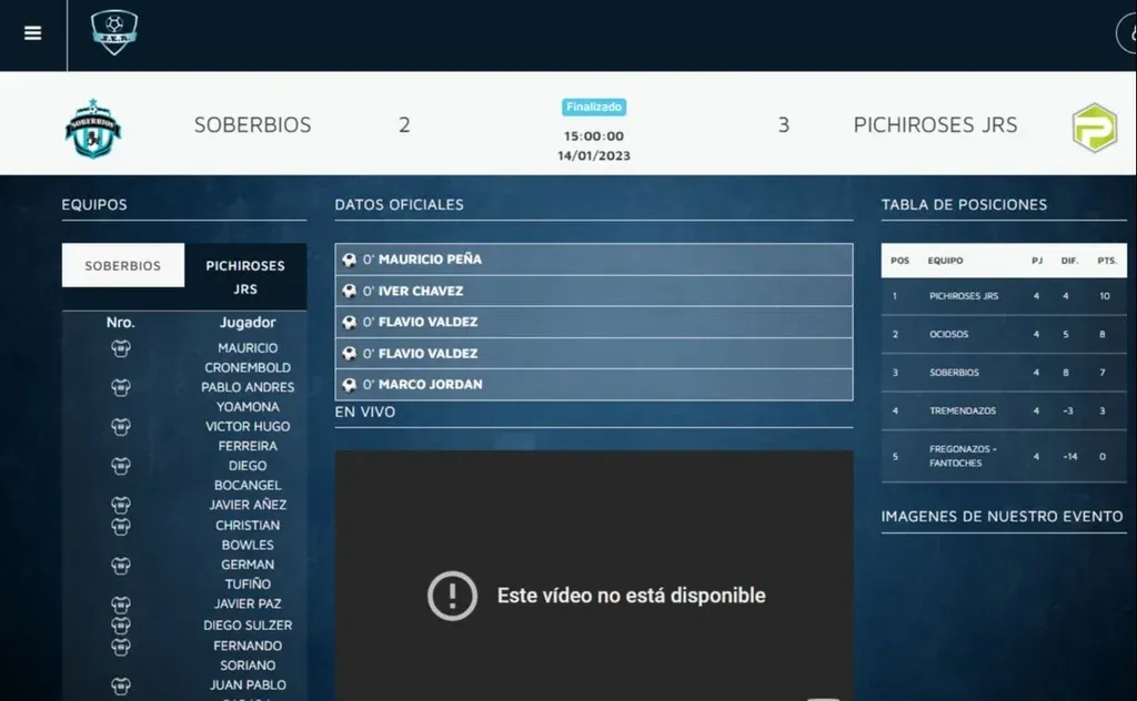 Sports Events Agency Partido entre Pichiroses, equipo en el que jugó Sebastián Marset, y Soberbios En la página oficial de la agencia se pueden ver todos los jugadores de Pichiroses, que tiene un jugador de nombre "Luis Paulo Santos", similar al alias de Marset.