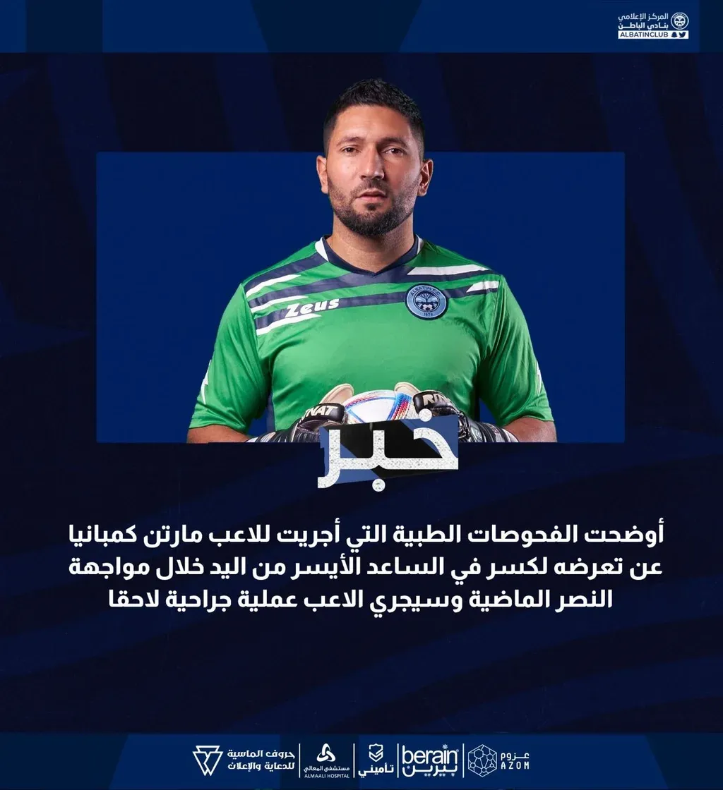El golero que ataja en Al Batin de Arabia Saudita se quebró en uno de sus brazos.