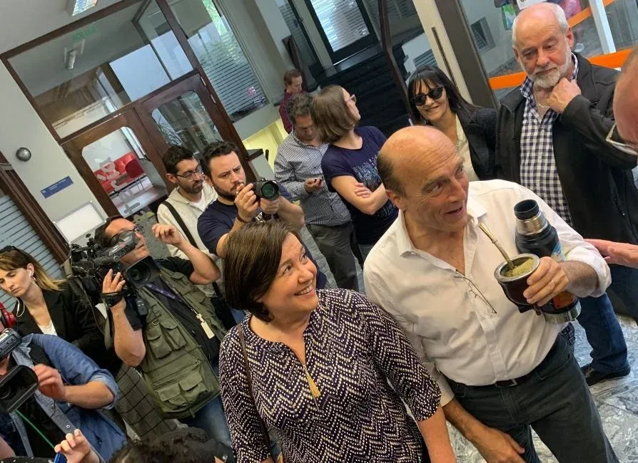 Temprano en la mañana, Martínez recibió varios llamados del exterior, incluyendo al excandidato presidencial de Brasil Fernando Haddad (PT) y el candidato argentino Alberto Fernández, favorito para consagrarse presidente en las elecciones de este domingo en el país vecino. Ante una región convulsionada por protestas, el candidato oficialista dijo que “Uruguay se ha convertido en un oasis de certezas”.
