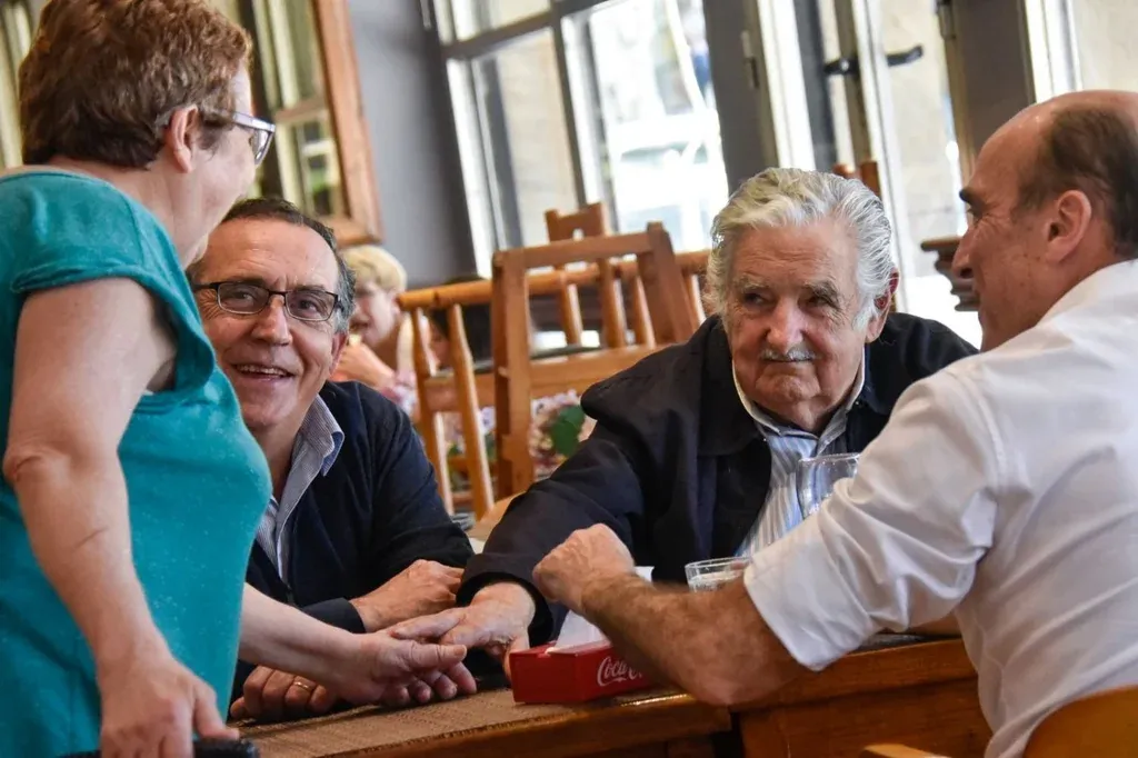 Mientras se alejaba del bar, un grupo de jóvenes con remeras de Nacional gritaron que el Pepe era "lo más grande de Uruguay". Un transeúnte frenó su bicicleta, la desparramó por la vereda, y suplicó una foto. Otro hombre, recostado contra una pared, reprochaba tanto elogio al expresidente, que se fue con la panza llena a "repartir algunas listas".