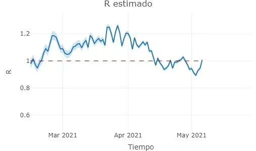 El R volvió a superar levemente la línea de 1, tras haberse mantenido por debajo durante semana y media