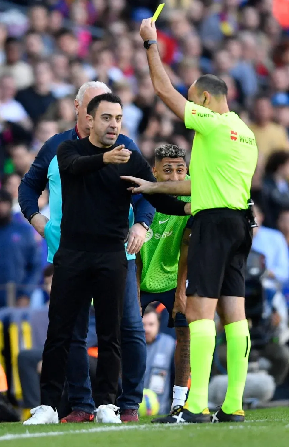 En Barcelona amonestó a Ansu Fati, Gavi, Jordi Alba, dos en tres minutos, Pedri, Ferrán Torres, Robert Lewandowski y Arnau Tenas desde el banco. A Alba le sacó la consiguiente roja. Al entrenador Xavi también lo amonestó.