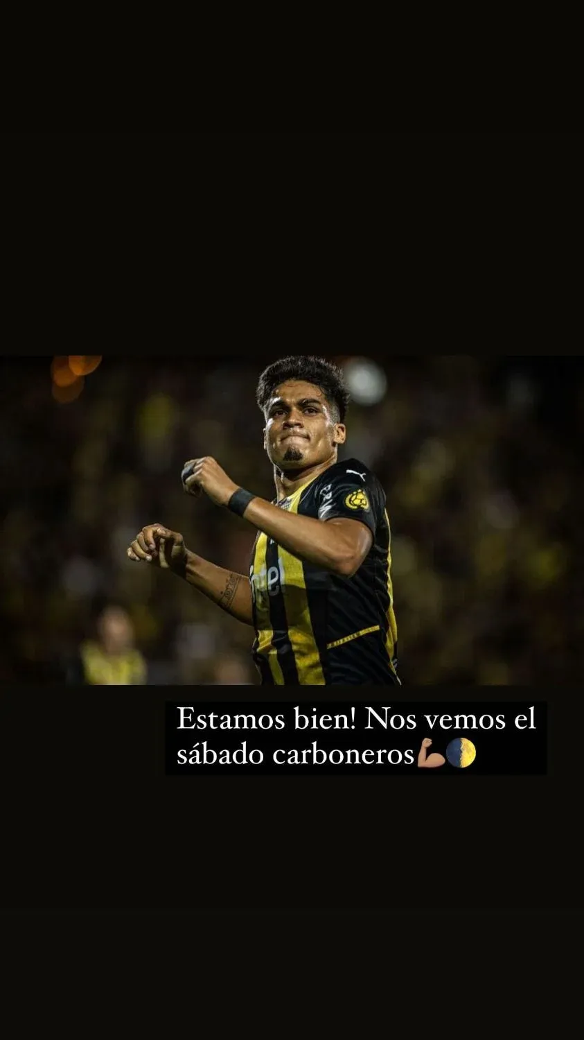 El jugador utilizó su cuenta de Instagram el martes de noche, cuando se conoció la noticia, para dar un mensaje esperanzador a los hinchas: "Estamos bien, nos vemos el sábado carboneros". Sin embargo, Arezo estará junto a sus compañeros alentando al equipo pero no en la cancha ante sus excompañeros, a los que le metió un hat-trick por Copa Sudamericana.