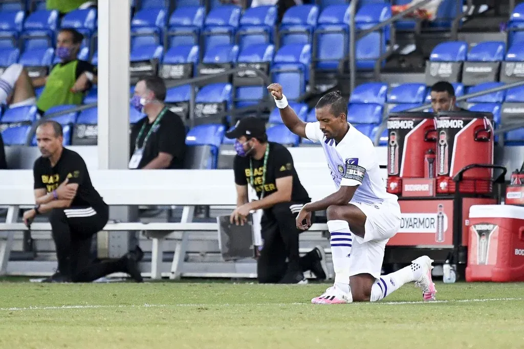 Antes de comenzar el partido los jugadores de ambos equipos hincaron su rodilla en el piso con el puño en alto para manifestarse contra el racismo.