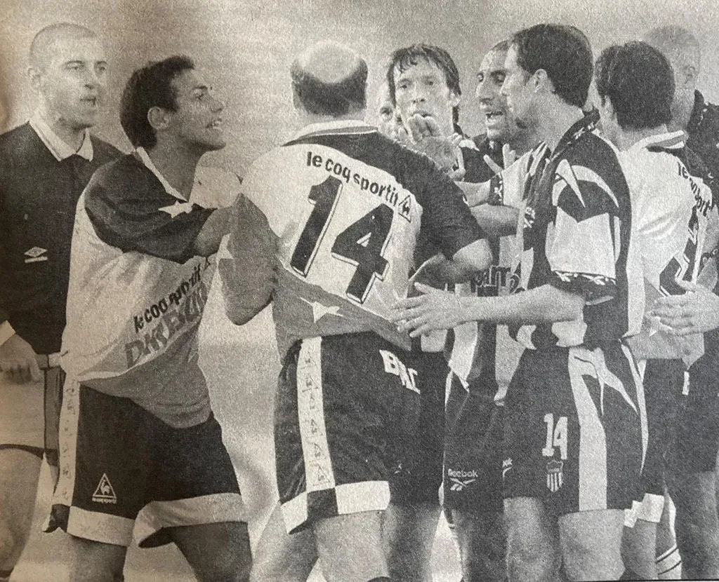“Engordé, pesaba 17 kilos más, y el Hugo González que era presidente de Huracán, que había clasificado por primera vez a una copa internacional, me pidió que fuera porque el plantel estaba integrado por muchos jugadores jóvenes. Me dijo que que iba a ser importante y como yo venía sacando la revista y Bengoechea venía jugando, y se podía dar el sexenio, volví. Puse el partido con Peñarol (en la cuarta jornada) como fecha para volver a jugar. Hice la pretemporada, bajé de peso y cuando llegó el partido, Beethoven Javier que era el técnico me puso en el segundo tiempo. Le pegué una patada a Pablo y (el árbitro Gustavo Gallesio) me tenía que haber sacado amarilla; si me la sacaba no me echaban porque me iba a controlar, pero como no me la sacó tenía otra más”.