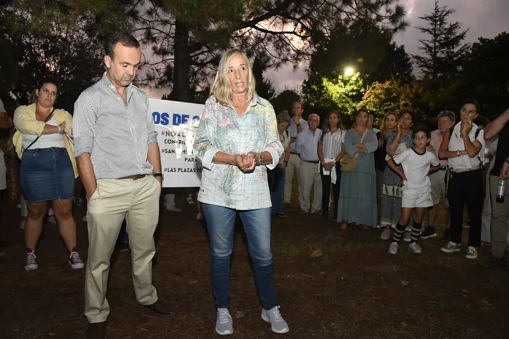 En el centro del círculo de la reunión de vecinos, en la plaza Lieja en Carrasco, se pararon Ruiz y el edil nacionalista Javier Barrios Bove, que se turnaron para hablar a la ronda de vecinos indignados por la suba de la contribución, la falta de pluviales y de saneamiento en la zona y el remate de tres padrones de áreas verdes por parte de la IMM. Pero, además estaban, mezclados entre los vecinos, la diputada de Cabildo Abierto (CA) Silvana Pérez Bonavita –que explicó que su partido no tiene ediles y que, por lo tanto, ella está trabajando "muy fuerte" en el municipio E– y el diputado nacionalista Álvaro Viviano.