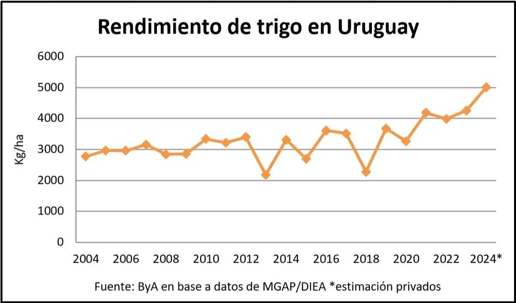 También es alta la productividad de la cebada, entre 4.500 y 5.000 kilos por hectárea, cerca del techo de unos 4.800 kg/ha en la zafra 2020/21, según estimó Guigou en Tiempo de Cambio de Radio Rural.
