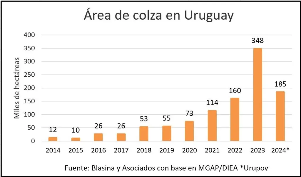 La colza es el cultivo de invierno que tuvo una productividad menor al año y “los números quedan en rojo”, dijo Guigou, con una cotización de US$ 396 la tonelada esta semana.