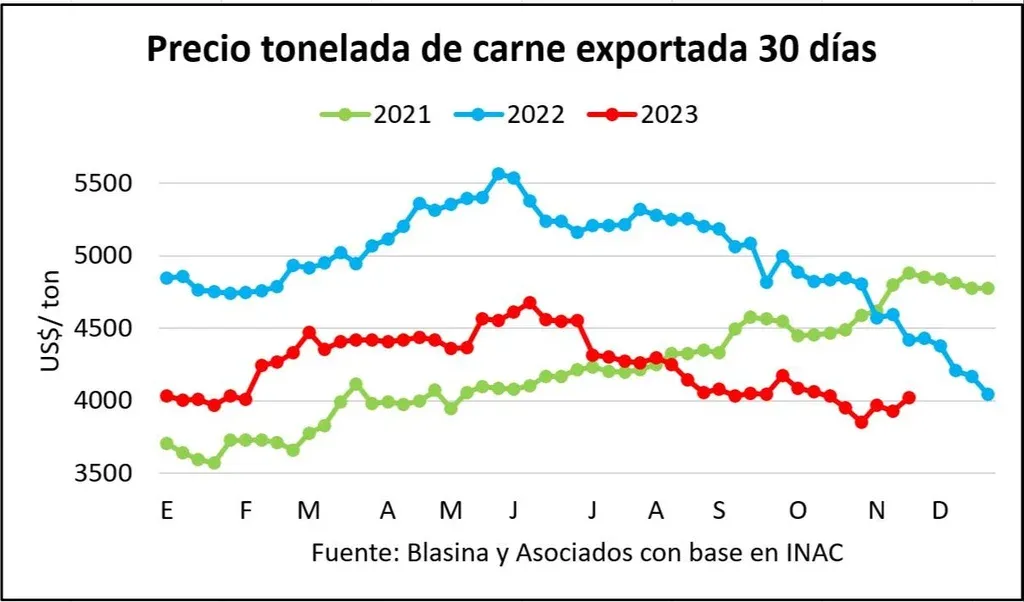 También se destacó el precio de exportación, que repuntó a US$ 4.501 por tonelada para la carne vacuna y devolvió el promedio de los últimos 30 días arriba de los US$ 4.000.