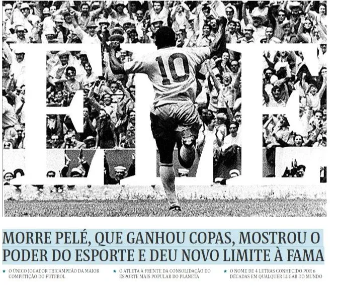 El diario Folha do Sao Paulo publicó: "Muere Pelé a los 82 años, el mejor jugador de la historia". Y agregó: " Muere Pelé, que ganó tres copas del mundo, demostró el poder del deporte y le dio un nuevo límite a la fama".