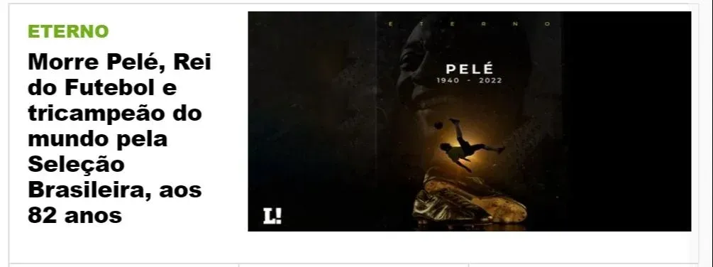 Por su parte, la página de Globo tituló "Infinito". Muere el rey Pelé, a los 82 años. El tricampeón del mundo con la selección de Brasil llevaba un mes hospitalizado por un tratamiento de cáncer de colon y falleció este jueves"