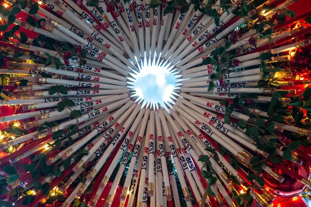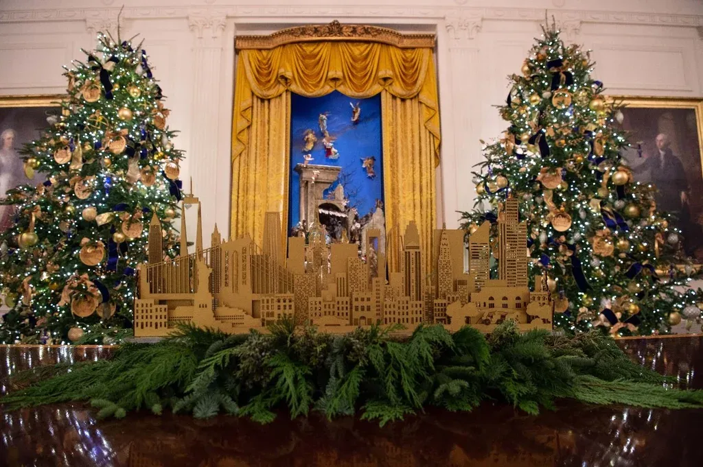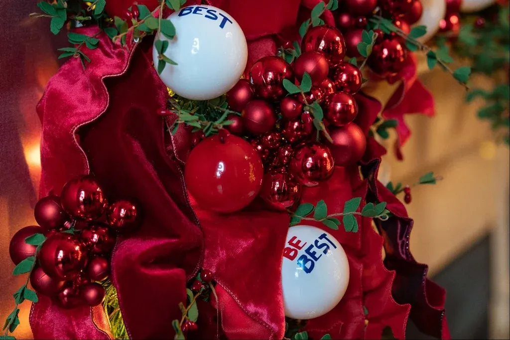 Entre llamativos árboles rojos, lapices con la leyenda "Be Best" (sea mejor, en español) como base de distintas decoraciones, guirnaldas que incluyen los nombres de todos los estados (incluido Puerto Rico) y varios elementos que aluden a la historia estadounidense, la decoración tuvo como leit motiv el concepto "AmericanTreasures" que busca rendirle homenaje a la herencia estadounidense.