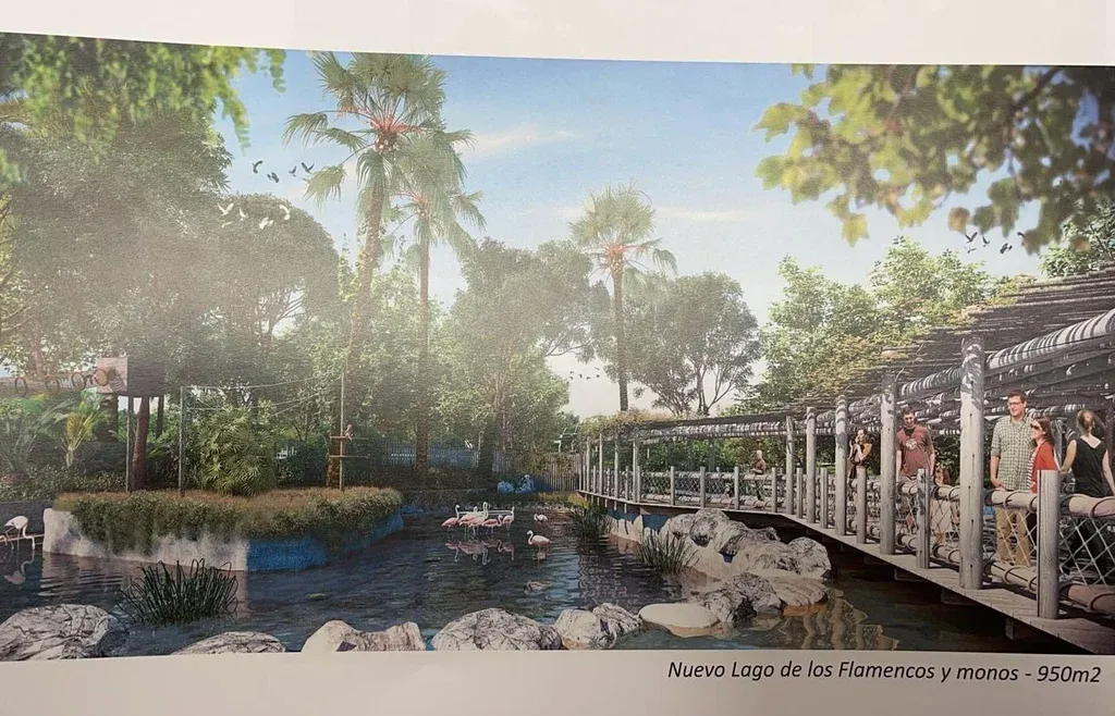Imagen del nuevo lago de flamencos y monos proporcionados por la IMM a la Junta Departamental
