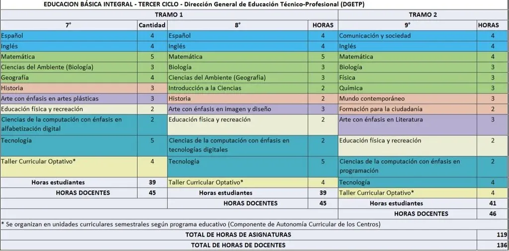 Porque de esas planillas —que los técnicos llaman “malla curricular”— depende si hay materias que se eliminan o se suman, qué asignaturas son obligatorias y cuáles opcionales y qué carga horaria tendrá cada docente. Al menos en Secundaria y UTU en donde los profesores eligen horas y no cargos.