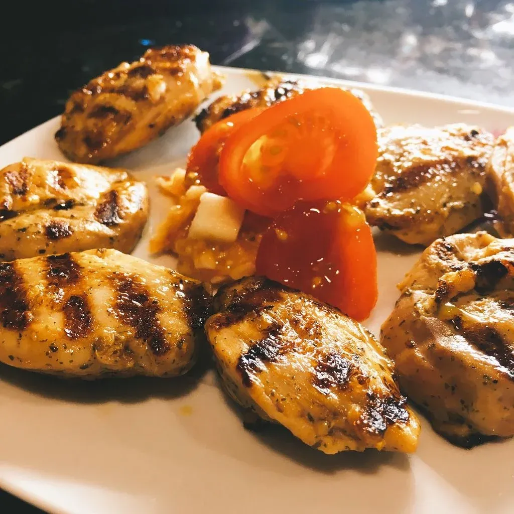 Churrasco de pollo/Ensalada de quinoa y rúcula.