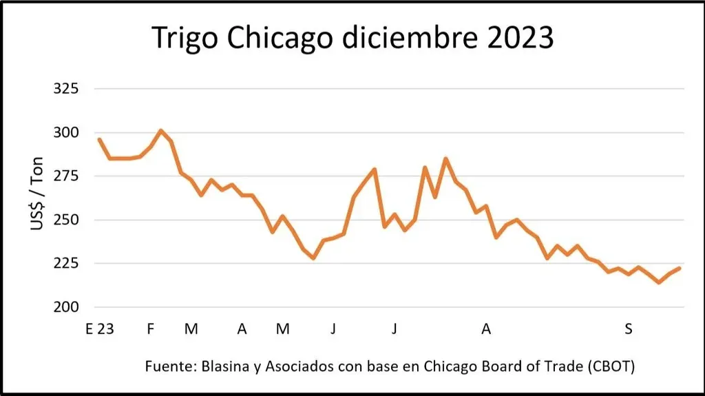 Para el trigo el rango de precios es más amplio, entre US$ 210 y US$ 225 la tonelada, según distintos operadores.