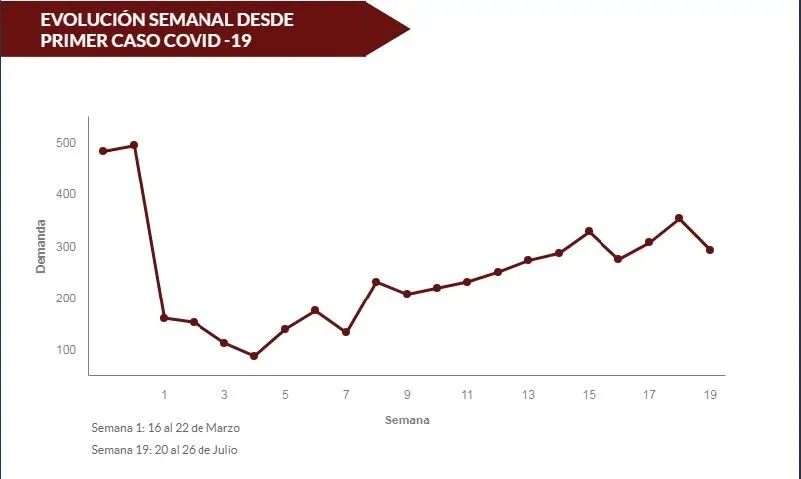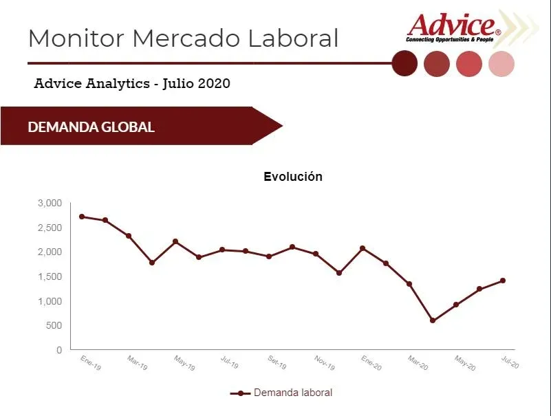 En julio hubo una reducción de aproximadamente 625 solicitudes de empleos con respecto a 2019, pero de todas formas a partir de abril de este año la demanda laboral comenzó a recuperarse reduciendo la brecha en relación al año pasado, tras la fuerte caída que hubo a partir de marzo.